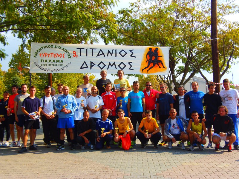Την Κυριακή 21 Οκτωβρίου στον Παλαμά Καρδίτσας διεξήχθη για μια ακόμη χρονιά ο 9ος Τιτάνιος Δρόμος. Ο αγώνας που συνδιοργάνωσαν ο τοπικός Α.Σ. Παλαμά ‘ΕΥΡΥΠΥΛΟΣ’ και ο Δημοτικός Οργανισμός Πολιτισμού Αθλητισμού και Προσχολικής Αγωγής Παλαμά (Δ.Ο.Π.Α.Π.Α.Π.)είχε μεγάλη οργανωτική επιτυχία.