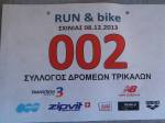 Σ’ενα ιδιότυπο αγώνα τρέξανε ένας δρομέας μας και ένας ποδηλάτης μας και κατέκτησαν την πρώτη θέση ανάμεσα σε 72 ζευγάρια.Στον τελευταίο αγώνα της χρονιάς Run+bike 2013 , που διεξήχθη στις εγκαταστάσεις του Ολυμπιακού Κωπηλατοδρομίου, η εκκίνηση δόθηκε για τους δρομείς ,όπου τον Σύλλογό μας αντιπροσώπευσε ένας από τους κορυφαίους δρομείς της χώρας μας ο Κωνσταντίνος Πούλιος, και στα 500 μέτρα τους περίμεναν οι ποδηλάτες,όπου για τον Σύλλογο μας ποδηλατούσε ο Σπύρος Χρυσικόπουλος.Στη συνέχεια οι ποδηλάτες ακολουθούσαν τον δρομέα τους κινούμενοι δίπλα τους και μόλις ο δρομέας ήθελε να ξεκουραστεί άλλαζαν θέσεις και ο ποδηλάτης γινόταν δρομέας και ο δρομέας ποδηλάτης.Τη συνολική απόσταση των 15 χιλιομέτρων κάλυψαν πρώτοι οι δύο αθλητές του Συλλόγου μας σε χρόνο 48:52.Συγχαρητήρια και πολλά μπράβο στους δύο αθλητές μας .