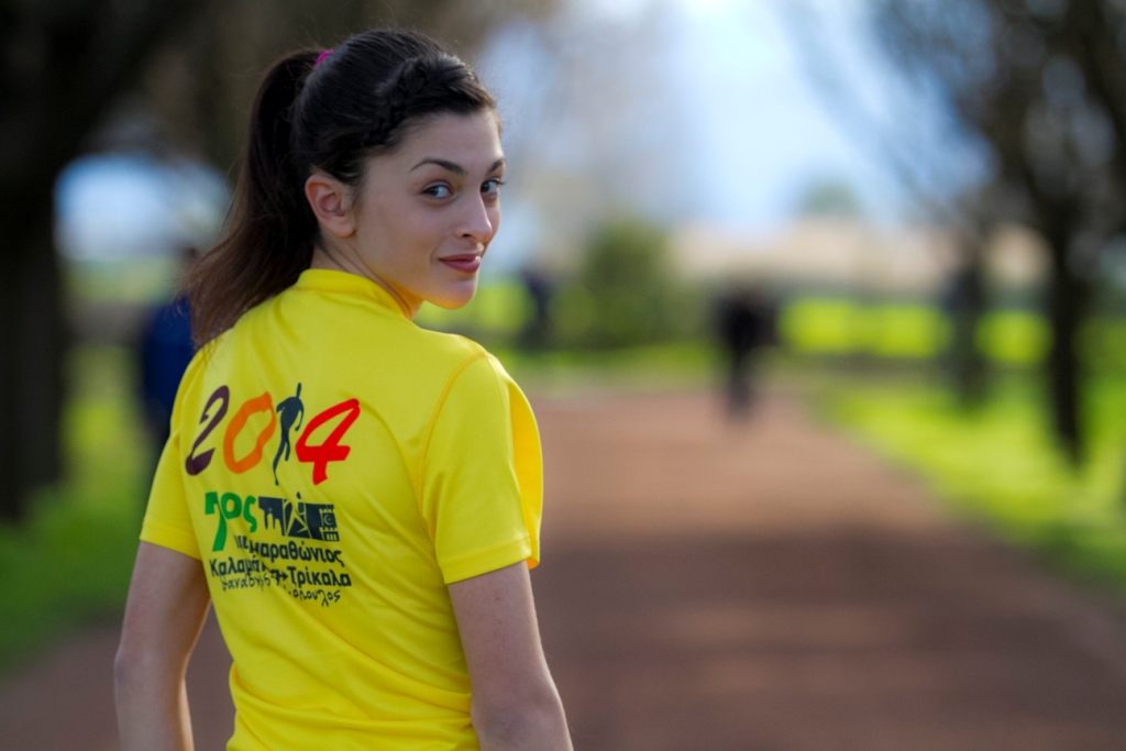 Ο Σύλλογος Δρομέων επέλεξε ένα από τα μεγαλύτερα ταλέντα του Κλασικού Αθλητισμού για να παρουσιάσει το επίσημο t-shirt του αγώνα. Συγκεκριμένα η αθλήτρια του Γ.Σ. Τρικάλων, Αναστασία Καρακατσάνη, βρέθηκε στον πιο γνωστό χώρο μαζικής άθλησης της πόλης των Τρικάλων, στο πάρκο του Αι Γιώργη, και προπονήθηκε φορώντας το μπλουζάκι της διοργάνωσης. Η Αναστασία όπως μας είπε έμεινε ενθουσιασμένη από την ποιότητα και την εφαρμογή του t-shirt. Επίσης, καταφέραμε και κλέψαμε λίγο από το χρόνο της και μας απάντησε σε μερικές ερωτήσεις μας.