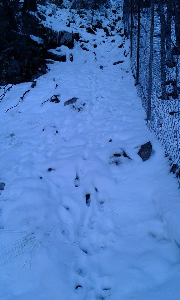Με το χιόνι φαίνονται και τα ίχνη των ζώων ενώ το σούρουπο έχει έρθει ήδη σε αυτό το κομμάτι της διαδρομής, μία που ο ήλιος έχει πάει από την πίσω μεριά του βουνού
