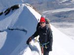 Κατόπιν αυτού ο γράφων με τον Ιρλανδό φίλο του Marc,που γνώρισα στι Αλπικό Κέντρο και τον Ελβετό οδηγό βουνού Christian την 11|7 πήραμε το τελεφερίκ και την 07.15 π.μ. από τα 3.820μ. στο τέρμα του τελεφερίκ δεθήκαμε με ορειβατικό σχοινί και με κραμπόν στις μπότες και την ορειβατική αξίνα(πιολέ) ανά χείρας αρχίσαμε την ανάβαση στο όρος Castor,του οποίου η κορυφή είναι στα 4.230μ.Οι αναβάσεις σε σκληρό χιόνι και παγετώνες σε τέτοια ύψη είναι επικίνδυνες,διότι ο παγετώνας δημιουργεί crevasses(κρεβάς),ανοίγματα και ρωγμές μεγάλου βάθους,η πτώση εντός των οποίων ισοδυναμεί κατά κανόνα με θάνατο.Προσεκτικά και πάντα ασφαλισμένοι, αποφεύγοντας ο έμπειρος(και γνωστός μου από άλλη ανάβαση) Christian τις κρεβάς φθάσαμε στην κορυφή την 10.00π.μ.,ακολουθώντας με άπειρη προσοχή μια κόψη και έχοντας παραπλεύρως μας τεράστιες πλαγιές.Ελάχιστοι ορειβάτες βρέθηκαν στην διαδρομή μας και φυσικά όλοι με οδηγό.Την 12.45μ.μ. κατεβήκαμε μέχρι το τελεφερίκ για κατάβαση στο Ζermatt.