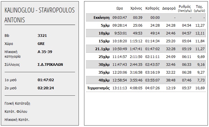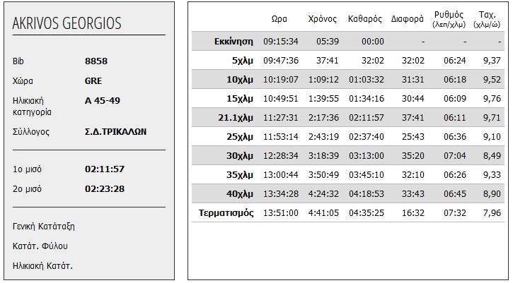 | 8858 | AKRIVOS GEORGIOS | 2:11:57 | 4:35:25 |