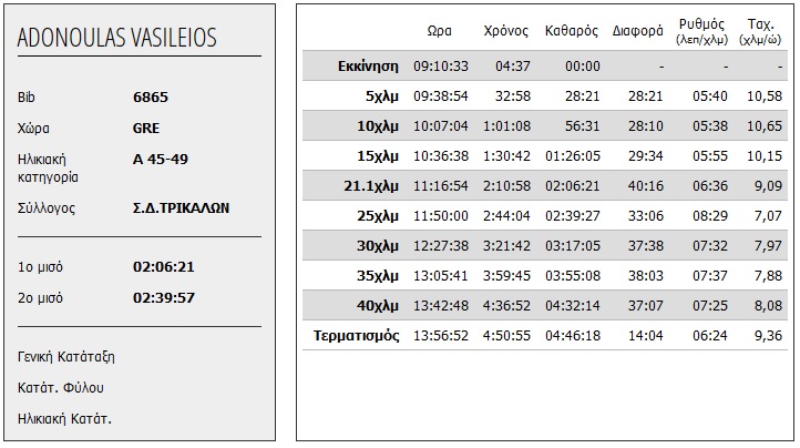 | 6865 | ADONOULAS VASILEIOS | 2:06:21 | 4:46:18 |