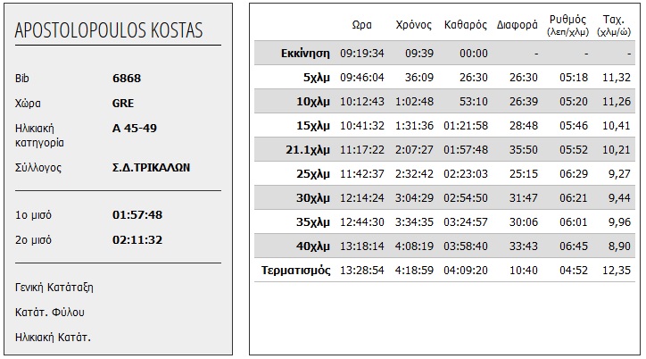 | 6868 | APOSTOLOPOULOS KOSTAS | 1:57:48 | 4:09:20 |