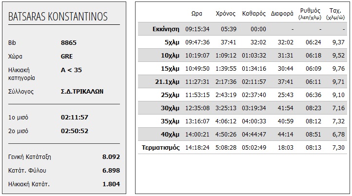 | 8865 | BATSARAS KONSTANTINOS | 2:11:57 | 5:02:49 |