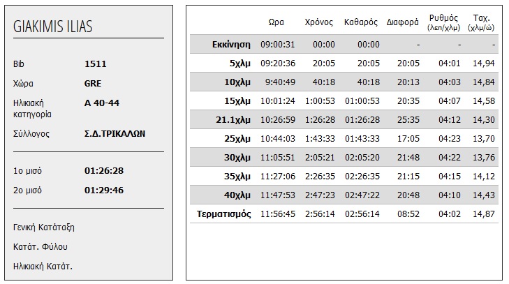 | 1511 | GIAKIMIS ILIAS | 1:26:28 | 2:56:14 |