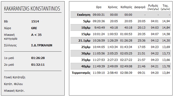 | 1514 | KAKARANTZAS KONSTANTINOS | 1:26:28 | 2:58:39 |