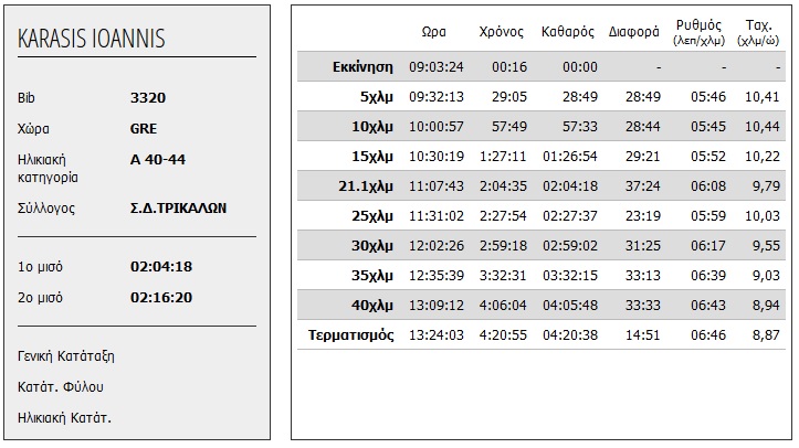 | 3320 | KARASIS IOANNIS | 2:04:18 | 4:20:38 |