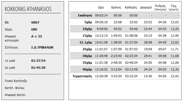 | 6867 | KOKKORAS ATHANASIOS | 1:37:54 | 3:23:24 |