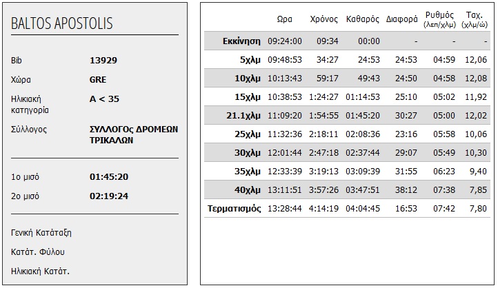 | 13929 | BALTOS APOSTOLIS | 1:45:20 | 4:04:45 |