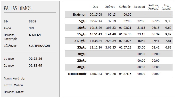 | 8859 | PALLAS DIMOS | 2:23:26 | 4:37:15 |