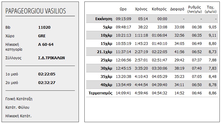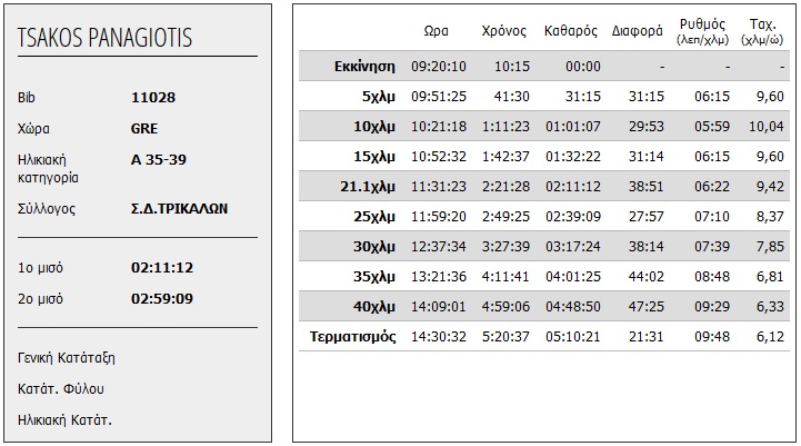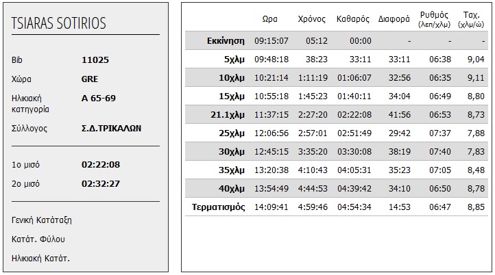 | 11025 | TSIARAS SOTIRIOS | 2:22:08 | 4:54:34 |