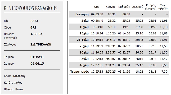 | 3323 | RENTSOPOULOS PANAGIOTIS | 1:45:41 | 3:51:56 |