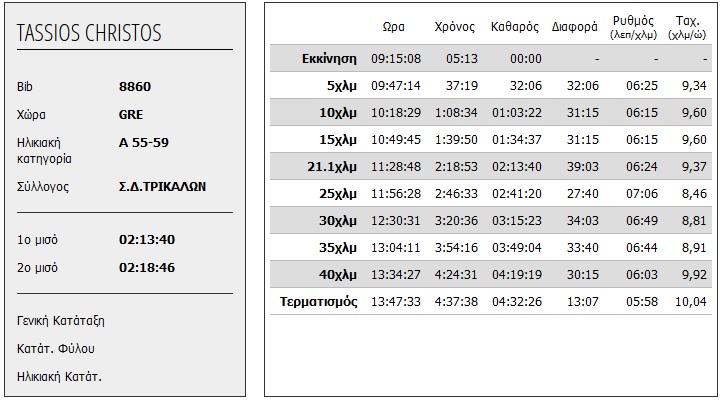 | 8860 | TASSIOS CHRISTOS | 2:13:40 | 4:32:26 |