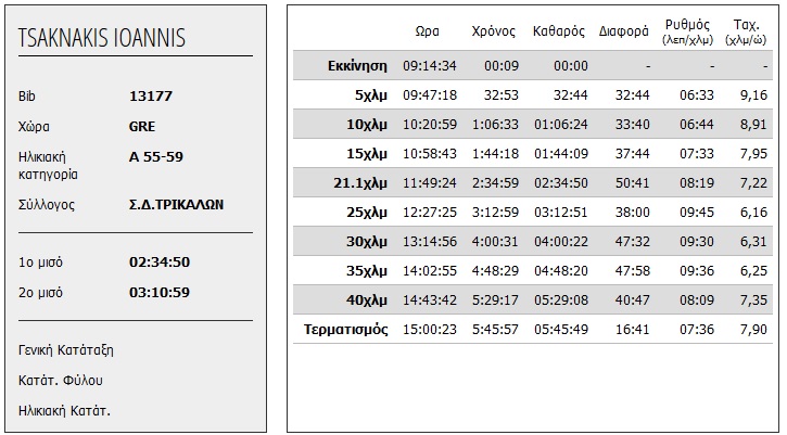 | 13177 | TSAKNAKIS IOANNIS | 2:34:50 | 5:45:49 |