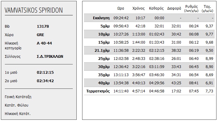 | 13178 | VAMVATSIKOS SPYRIDON | 2:12:15 | 4:46:58 |
