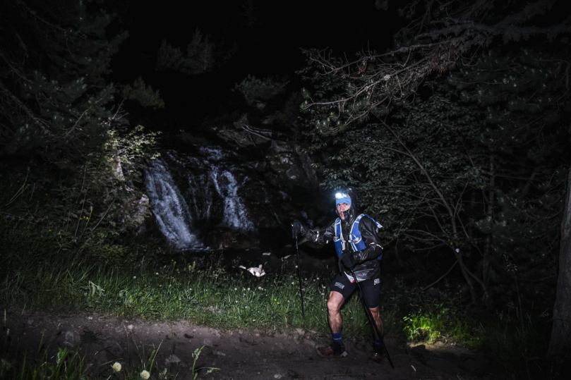 4) Το κομμάτι του αγώνα από το 123ο έως το 138ο χλμ. Έφυγα από το σταθμό Banhs de Tredos γύρω στις 3 τα ξημερώματα της δεύτερης νύχτας, γεμάτος άγνοια για αυτό που έμελλε να είναι το απαιτητικότερο τμήμα του αγώνα. Συνεχόμενη ανάβαση διαρκείας σε έντονα πετρώδες τεραίν (ούτε λόγος για τρέξιμο), ώσπου ξεκίνησε το scrambling, δηλαδή η αναρρίχηση και η κίνηση πάνω σε ευμεγέθεις βράχους, που δεσπόζανε σε ένα σεληνιακό τοπίο. Μια απίστευτη σωματική και ψυχολογική δοκιμασία με ανταμοιβή να ξημερώσουμε σε μια εντυπωσιακή αλπική λίμνη περίπου στα 2600μ.