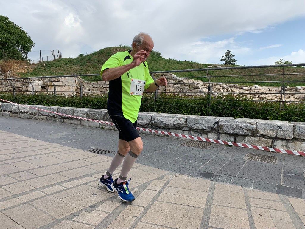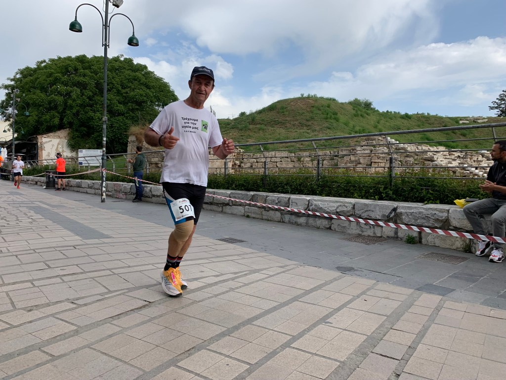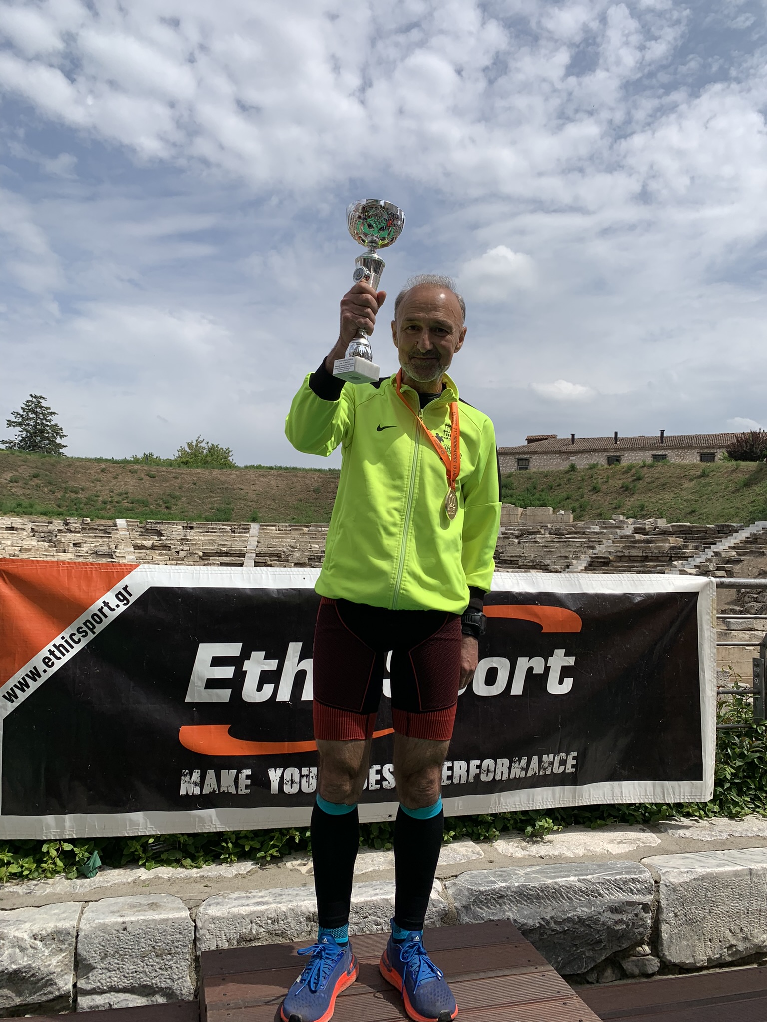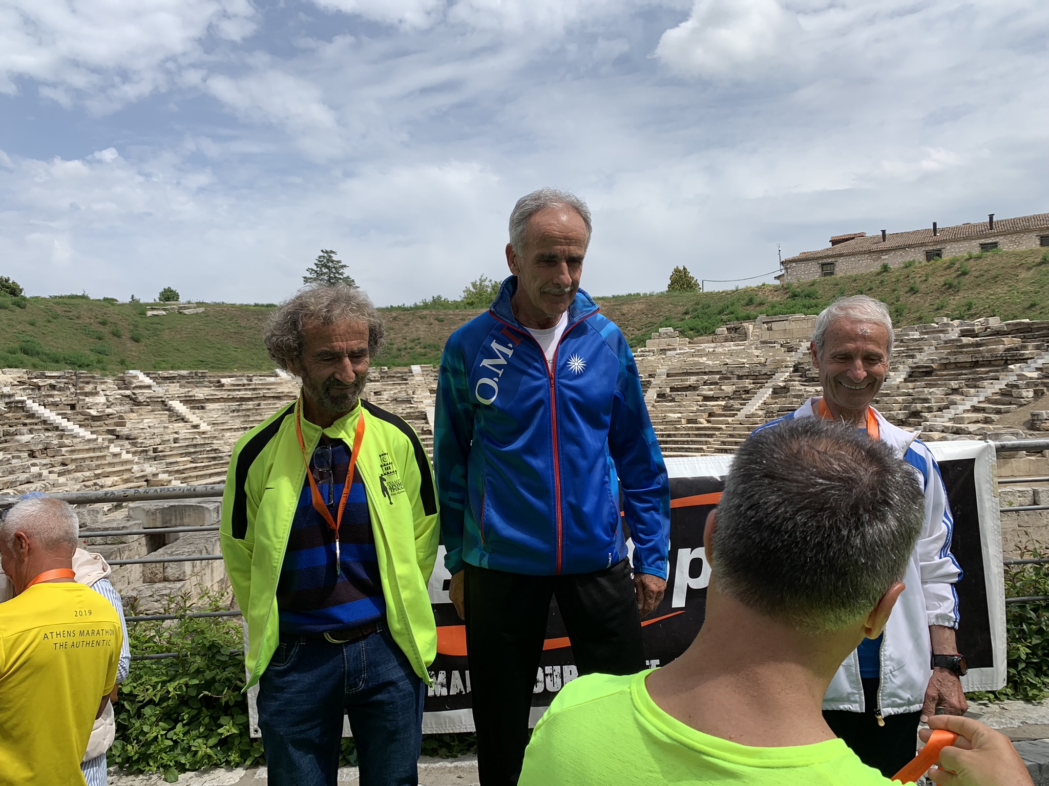 Τέλος, ο έβδομος δρομέας μας που ανέβηκε στο βάθρο ήταν ο Γιώργος Θέμελης . Ο κύριος Γιώργος , βραβεύθηκε από τους διοργανωτές ως ο μεγαλύτερος δρομέας που τερμάτισε , παραλαμβάνοντας το κύπελό του καταχειροκροτούμενος από θεατές , διοργανωτές και δρομείς.