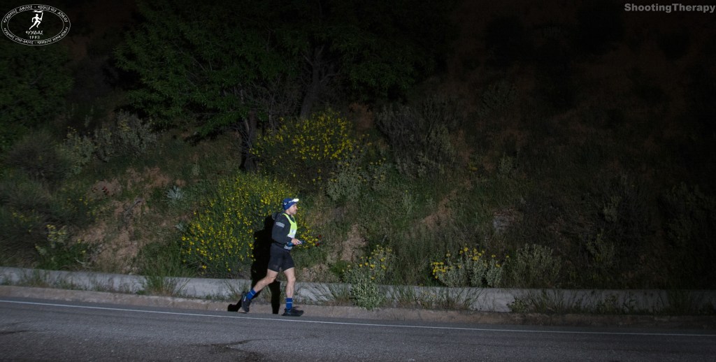 Η έναρξη του αγώνα των 107,5χλμ ήταν προγραμματισμένη για τα ξημερώματα του Σαββάτου 07/05 από τους Δελφούς. Εκεί λοιπόν είχα δώσει ραντεβού με 2 καλούς φίλους που αποδέχθηκαν την πρόσκλησή μου να αποτελέσουν την ομάδα υποστήριξής μου στην διάρκεια του αγώνα και λίγο πριν τα μεσάνυχτα 83 άτομα σταθήκαμε στην γραμμή της εκκίνησης στο κέντρο των Δελφών. Ο αγώνας ξεκινούσε με μια συνεχόμενη ανάβαση περί τα 12χλμ που κατέληγε στην Αράχωβα και από εκεί ακολουθούσε κατάβαση μέχρι το ιστορικό μαρτυρικό Δίστομο, όπου στο 27,5 χλμ. υπήρχε ο πρώτος κεντρικός σταθμός του αγώνα και όπου για πρώτη φορά συναντήθηκα με την ομάδα υποστήριξής μου και έκανα μια ολιγόλεπτη στάση. Ο καιρός ήταν σχετικά κρύος για την εποχή και κυρίως είχε έντονο αέρα, που κατά διαστήματα ταλαιπωρούσε τους δρομείς. Τα επόμενα 13 χλμ. ήταν χωρίς ιδιαίτερες ανηφορικές ή κατηφορικές κλίσεις μέχρι το 40ο περίπου χλμ., οπότε και ξεκινούσε η ανάβαση του όρους Ελικώνα με μεγάλες ανηφορικές κλίσεις μέχρι το χωριό Κυριάκι στο 45ο περίπου χλμ., στα 1050μ υψόμετρο. Αυτό ήταν ένα κομμάτι του αγώνα που το έζησα με αρκετή ένταση, χωρίς να μπω σε λογική συντήρησης δυνάμεων για την συνέχεια, γεγονός το οποίο πιθανώς με «χρέωσε» δρομικά στην συνέχεια. Από το Κυριάκι συνεχίζονταν η ανηφόρα – όχι με τόσο έντονη κλίση όμως –μέχρι το πανέμορφο οροπέδιο της Αρβανίτσας (μια περιοχή που μου θύμισε τα περτουλιώτικα λιβάδια), όπου το ξημέρωμα μας βρήκε στην καρδιά του ελατοδάσους, στο 52,5χλμ , και όπου ήταν και το ψηλότερο σημείο του αγώνα. Λίγο παρακάτω ξεκινούσαν κατηφορικές κλίσεις πλέον, που κάνανε κατά διαστήματα τους τετρακέφαλους μου να πονάνε μέχρι το χωριό Αγ. Άννα στο 59ο χλμ, με τον δεύτερο κεντρικό σταθμό του αγώνα. Η ομάδα υποστήριξής με βοήθησε να αλλάξω ρούχα, μιας και είχε αρχίσει να ανατέλλει ο ήλιος και ο καιρός είχε ζεστάνει, έφαγα στα γρήγορα και συνέχισα την διαδρομή, η οποία αρχικά ήταν χωρίς κλίσεις, αλλά λίγο αργότερα ξεκινούσανε κατηφορικές «κορδέλες» με θέα στον κορινθιακό κόλπο. Μια παρατεταμένη κατάβαση μας έβγαλε τελικά στον κάμπο, στο χωριό Θίσβη στο 72,5 περίπου χλμ., με 35 χλμ. να απομένουν για τον τερματισμό με ελαφριά ανηφορική κλίση πλέον. Εν συνεχεία διέσχισα διαδοχικά τα χωριά Ξηρονομή και Ελλοπία για να καταλήξω στα ιστορικά Λεύκτρα στο 95ο περίπου χιλιόμετρο, με τα πόδια μου να έχουν σφίξει αρκετά πλέον. Στον σταθμό αφιέρωσα λίγο χρόνο σε διατάσεις, πράγμα επώδυνο, αλλά απαραίτητο στο συγκεκριμένο χρονικό σημείο και συνέχισα με το μοναδικό χωμάτινο κομμάτι της διαδρομής, διασχίζοντας το κανάλι του Μόρνου. Βγαίνοντας από τον χωματόδρομο και λίγο παρακάτω συνάντησα τον τελευταίο σταθμό στην διασταύρωση Καπαρελλίου στο 102,5 χλμ και μετά από σύντομη στάση ξεκίνησα για τα τελευταία 5χλμ που με οδήγησαν στις Πλαταιές και τον τερματισμό αυτού του πολύ όμορφου και ιδιαίτερου αγώνα υπεραπόστασης. Για την ιστορία τερμάτισα 36ος μεταξύ 72 αθλητών που πήρανε χρόνο, με 13:54:24, ενώ υπήρξανε και 11 εγκαταλείψεις.