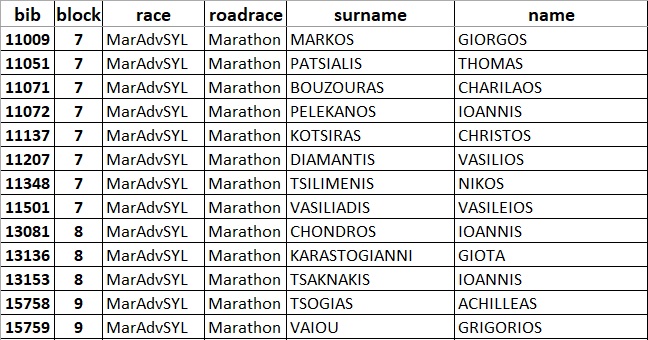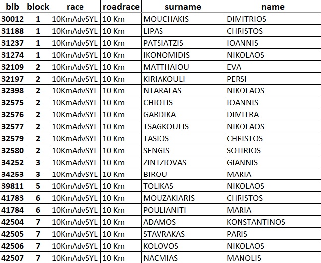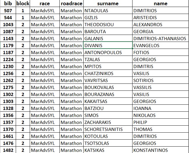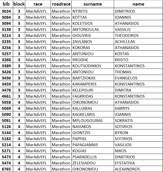 Δείτε την λίστα με τους αριθμούς συμμετοχής , τα μπλοκ εκκίνησης και  τα ονοματεπώνυμα. Αν δεν βρείτε το ονοματεπώνυμο στις λίστες συμμετοχής  παρακαλούμε επικοινωνήστε άμεσα με τον Γιοντζή Βύρωνα , στο τηλέφωνο 6946905953. Επίσης, αν θέλει κάποιος από τους παραπάνω δρομείς να κάνει κάποια αλλαγή , να ενημερώσει μέχρι το βράδυ της Δευτέρας.