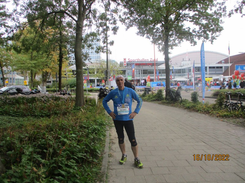 Την Κυριακή 16 Οκτ. ήταν οι μεγάλοι αγώνες δρόμου σε ένα Άμστερνταμ που γιόρταζε. Τα μεγάφωνα μας έλεγαν οτι σήμερα γράφουμε Ιστορία. Πράγματι μπορώ να παραδεχθώ οτι εκείνη την Κυριακή τρέξαμε το αριστούργημά μας, όπως είναι γραμμένο στα μετάλλιά μας. Η διοργάνωση ήταν άψογη, ο κόσμος που μας επευφημούσε πολύς και μουσικές μπάντες κατα την διαδρομή μας εμψύχωναν. Πάνω από 18.000 δρομείς έτρεξαν στον Μαραθώνιο των 42χλμ. και 16.600 περίπου στον Ημιμαραθώνιο των 21χλμ. στον οποίον έλαβε μέρος και ο γράφων (για την Ελλάδα ρε γαμώτο). Για την ιστορία αναφέρω οτι στον Μαραθώνιο τερμάτισε πρώτος ο Αιθίοψ Τσεγκάγιε Γκετατσέου μεχρόνο 2 ώρες, 4 λεπτά και 49 δευτερόλεπτα και στις γυναίκες η Αιθιοπίς Αλμάζ Αγιάνα με χρόνο 2 ώρες, 17 λεπτά και 19 δευτερόλεπτα (χρόνος απίστευτος) Στον Ημιμαραθώνιο πρώτος ήταν ο Γάλλος Νικολά Νταρού με χρόνο 1 ώρα, 5 λεπτά και 28 δευτερόλεπτα και στις γυναίκες η Γερμανίς Κιάρα Νάχεν με χρόνο 1 ώρα, 14 λεπτά και 54 δευτερόλεπτα. Ο γράφων εκφράζει την ευγνωμοσύνη του σε όλους και δίνουμε όλοι ραντεβού στην επόμενη παγκόσμια γιορτή του αθλητισμού κάπου πάλι στην αγαπημένη Ευρώπη μας.