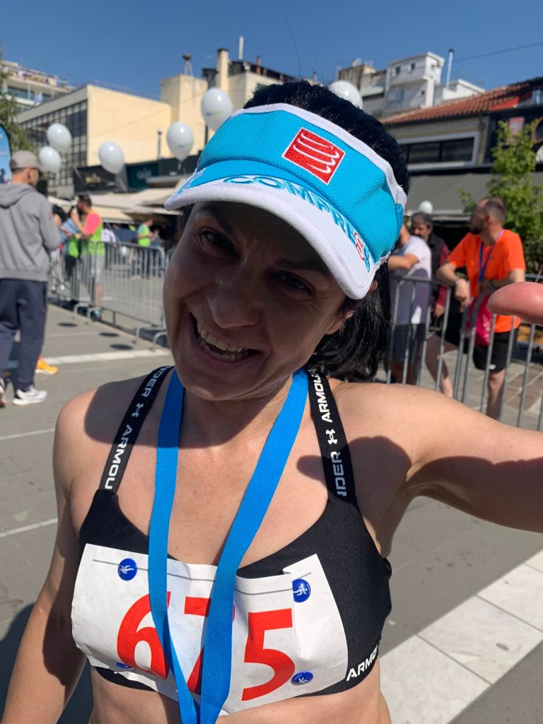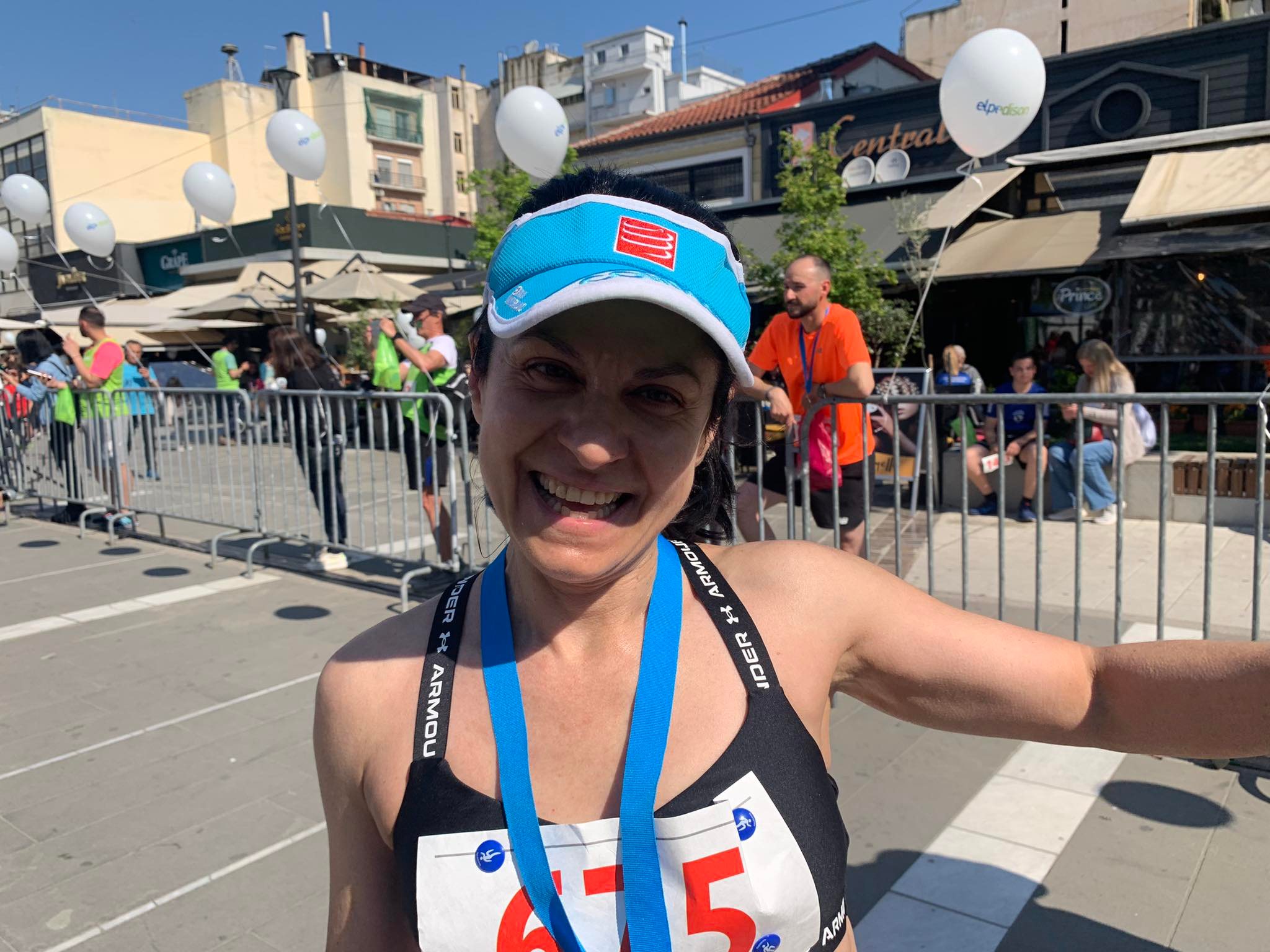 Η Έφη Ζελεσιάδου τερμάτισε πρώτη στην ηλικιακή της κατηγορία με χρόνο 1:47:03.