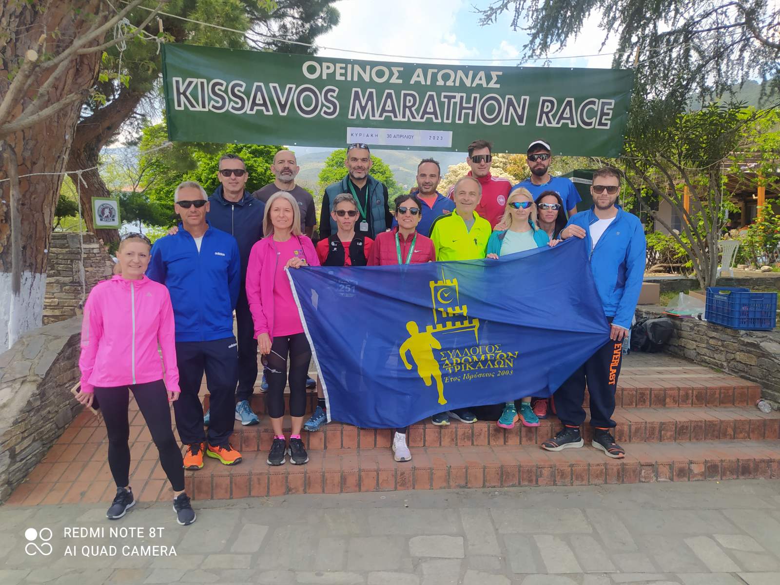Σε έναν ακόμη αγώνα συμμετείχε ομαδικά ο Σύλλογός μας .Αυτήν την φορά περισσότερα από 20 μέλη μας συμμετείχαν στους ορεινούς αγώνες του Kissavos Marathon Race που περιελάμβανε τρεις διαδρομές ,τον μεγάλο αγώνα των 37 χλμ. , τον αγώνα των 20 χλμ. και τον μικρό αγώνα των 12 χλμ. Με επίκεντρο την πόλη της Αγιάς όπου ήταν η εκκίνηση αλλά και ο τερματισμός του αγώνα οι δρομείς κινήθηκαν στην νότια πλευρά του όρους Όσσα (Κίσσαβος) και απήλαυσαν τις μοναδικές ομορφίες που προσφέρει το βουνό.Τον αγώνα διοργάνωσε ο Σύλλογος Δρομέων Υγείας Αγιάς και ο Δήμος Αγιάς , με την υποστήριξη της Περιφέρειας Θεσσαλίας . Μετά το τέλος των αγώνων οι διοργανωτές παρείχαν στους συμμετέχοντες τοπικά προϊόντα όπως τα γνωστά μήλα Αγιάς , τοπικές πίτες και γλυκά μέχρι και σουβλακια !