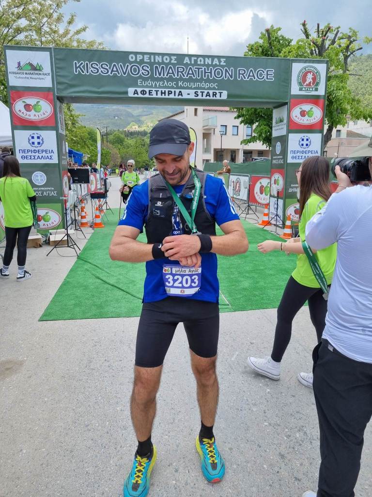 Πέντε συμμετοχές για τον Σύλλογό μας στον μεγάλο αγώνα των 37 χλμ. . Ο αγώνας ξεκίνησε στις 7:30 από την πλατεία της Αγιάς και οι δρομείς κινήθηκαν στον ορεινό όγκο του Κισσάβου φτάνοντας μέχρι την κορυφή Αηλιάς στα 1978 μέτρα. Από εκεί άρχισαν την κατάβαση και περνώντας μέσα από τα γραφικά χωριά Ανατολή και Μεταξοχώρι τερμάτισαν στην πλατεία της Αγιάς . Την καλύτερη επίδοση απο τους δρομείς μας πέτυχε ο Θωμάς Αντωνίου . Ολοκλήρωσε την απόσταση σε 5:12:07 , ενώ η μόνη γυναίκα που συμμετείχε στον αγώνα , η Ιωάννα Μπάτζιου τερμάτισε σε 6:24:41 . Δείτε τα αποτελέσματα των πέντε δρομέων μας :