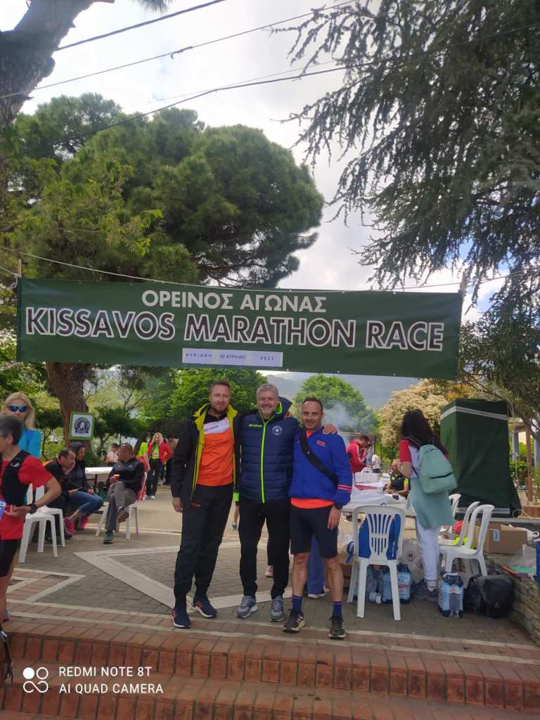 Σε έναν ακόμη αγώνα συμμετείχε ομαδικά ο Σύλλογός μας .Αυτήν την φορά περισσότερα από 20 μέλη μας συμμετείχαν στους ορεινούς αγώνες του Kissavos Marathon Race που περιελάμβανε τρεις διαδρομές ,τον μεγάλο αγώνα των 37 χλμ. , τον αγώνα των 20 χλμ. και τον μικρό αγώνα των 12 χλμ. Με επίκεντρο την πόλη της Αγιάς όπου ήταν η εκκίνηση αλλά και ο τερματισμός του αγώνα οι δρομείς κινήθηκαν στην νότια πλευρά του όρους Όσσα (Κίσσαβος) και απήλαυσαν τις μοναδικές ομορφίες που προσφέρει το βουνό.Τον αγώνα διοργάνωσε ο Σύλλογος Δρομέων Υγείας Αγιάς και ο Δήμος Αγιάς , με την υποστήριξη της Περιφέρειας Θεσσαλίας . Μετά το τέλος των αγώνων οι διοργανωτές παρείχαν στους συμμετέχοντες τοπικά προϊόντα όπως τα γνωστά μήλα Αγιάς , τοπικές πίτες και γλυκά μέχρι και σουβλακια !