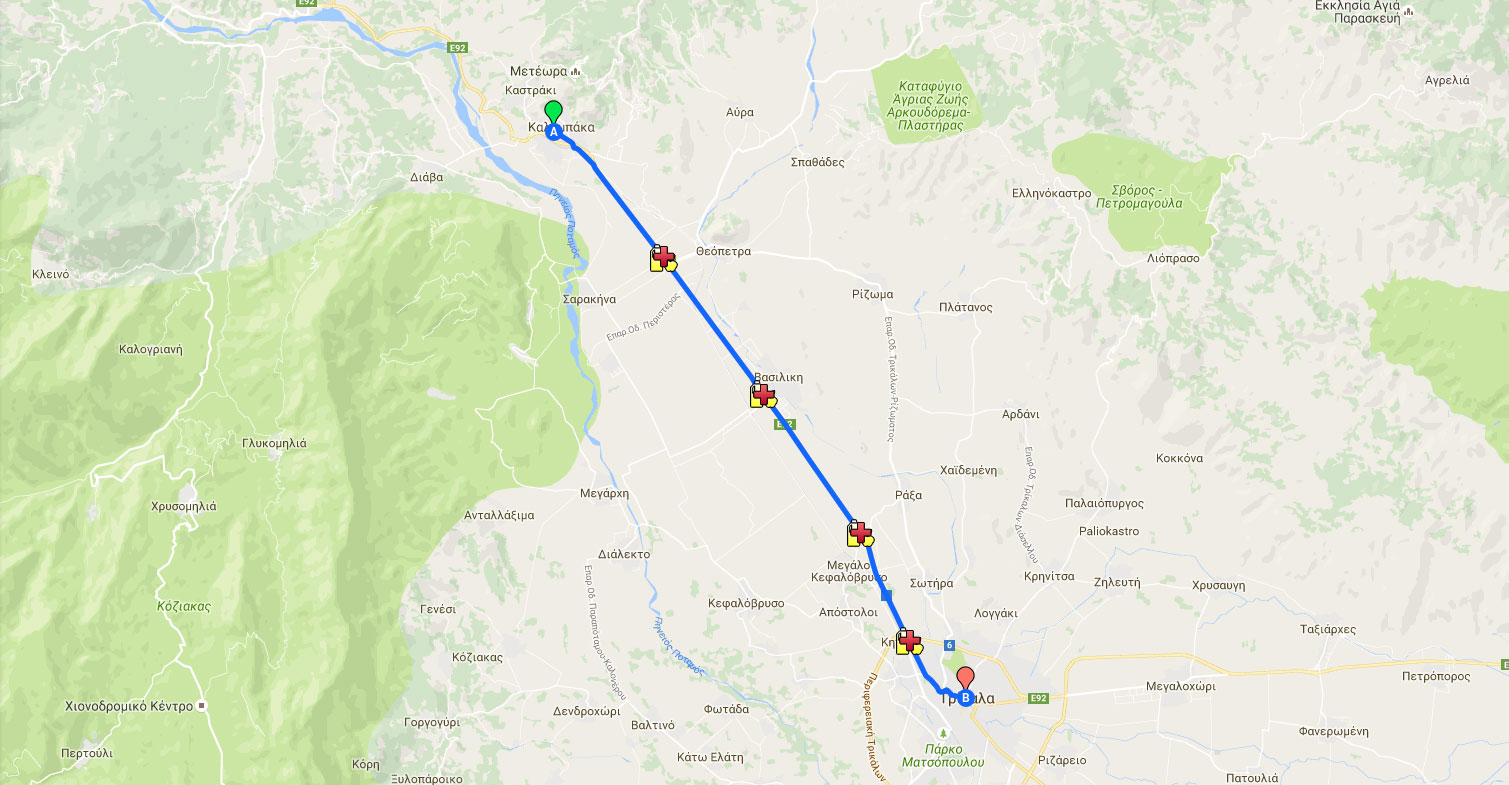 - Τερματισμός: Κεντρική πλατεία Τρικάλων*