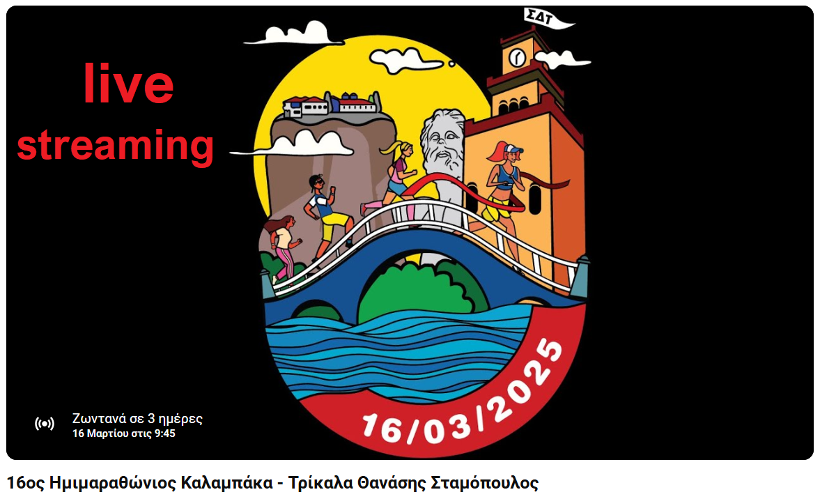 Ο Ημιμαραθώνιος Καλαμπάκα – Τρίκαλα «Θανάσης Σταμόπουλος» είναι μία από τις πιο αγαπητές δρομικές διοργανώσεις της Ελλάδας, προσελκύοντας κάθε χρόνο εκατοντάδες δρομείς από όλη τη χώρα. Φέτος, για πρώτη φορά στην ιστορία του αγώνα, θα πραγματοποιηθεί ζωντανή μετάδοση (live streaming), δίνοντας τη δυνατότητα σε θεατές από κάθε γωνιά της Ελλάδας και του εξωτερικού να παρακολουθήσουν τη διοργάνωση σε πραγματικό χρόνο.