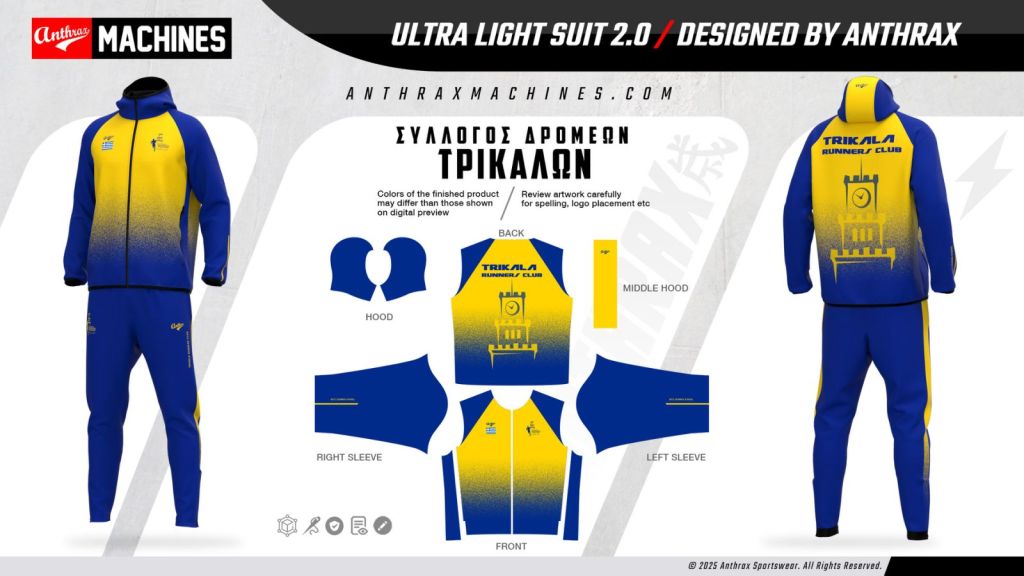 Ο Σύλλογος Δρομέων Τρικάλων προσφέρει στα μέλη του τον καλύτερο εξοπλισμό για την προπόνηση και τη συμμετοχή τους στους αγώνες. Με μεγάλη χαρά ανακοινώνουμε τη δημιουργία και διάθεση των νέων επίσημων αθλητικών φορμών του Συλλόγου μας σε συνεργασία με την κορυφαία ελληνική εταιρεία αθλητικής ένδυσης Anthrax.